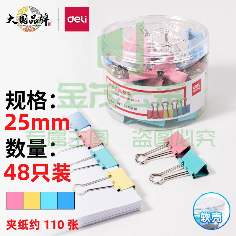得力8554ES彩色长尾票夹筒装(混)(48只/筒)