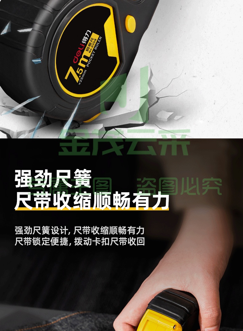 得力(deli)7.5m全包胶带锁定钢卷尺/测量尺 办公用品 8209