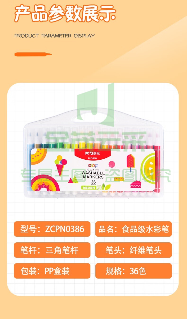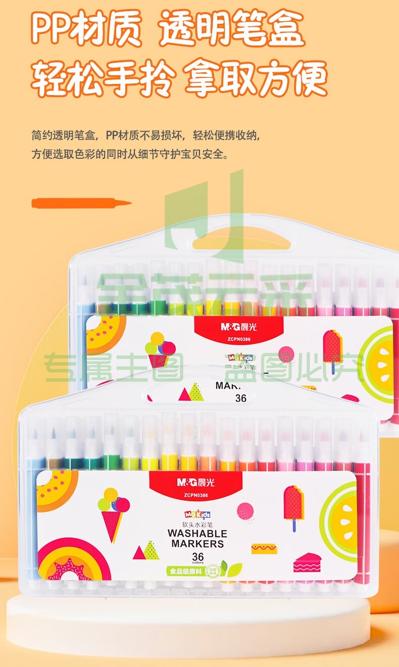 晨光(M&G)文具三角杆彩色水笔MG KIDS食品级软头学生水彩笔套装36色儿童绘画笔可水洗 36支/盒 ZCPN0386/