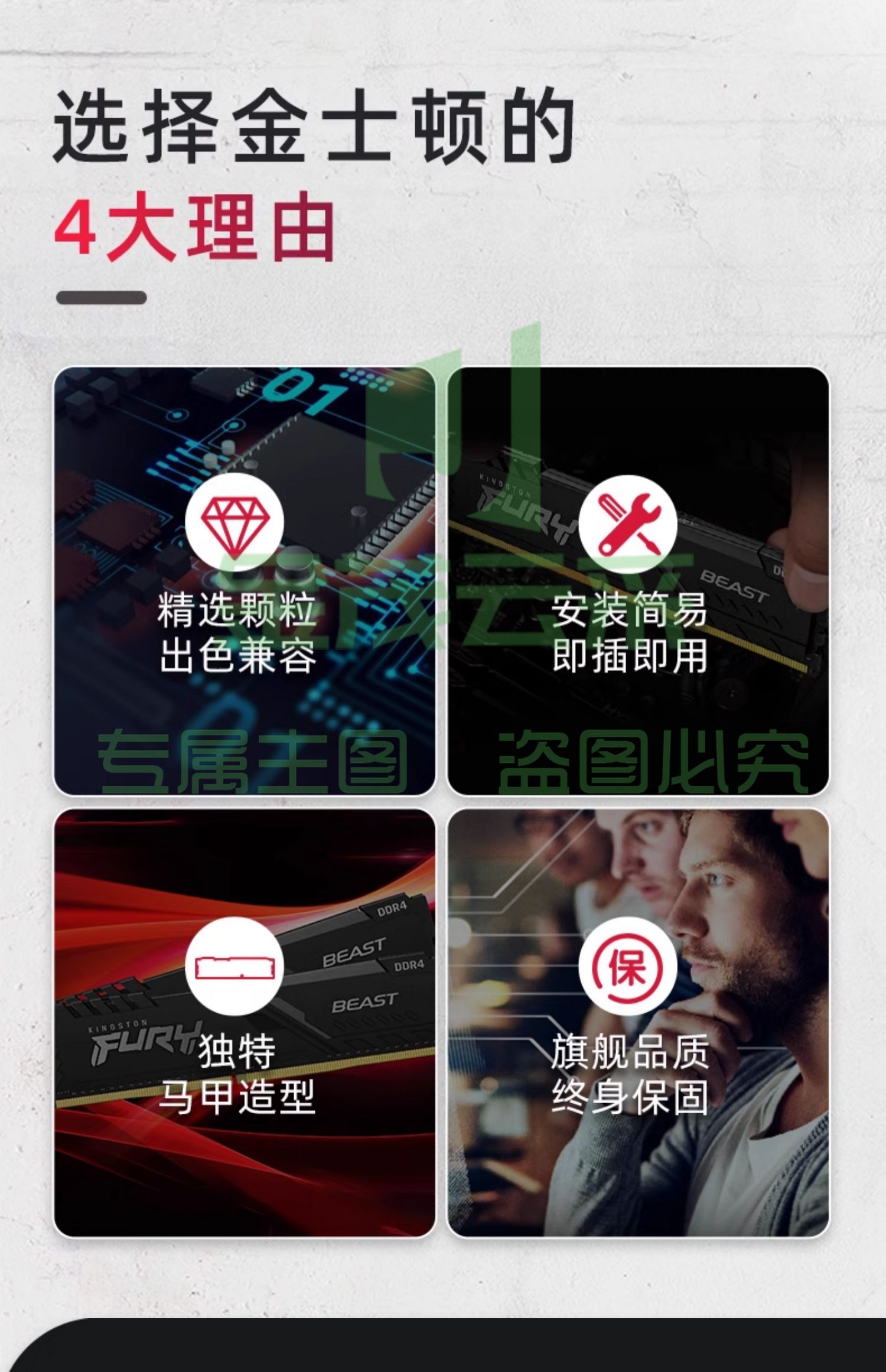 金士顿 FURY 16GB DDR4 3200 台式机内存条 Beast野兽系列 全新国行