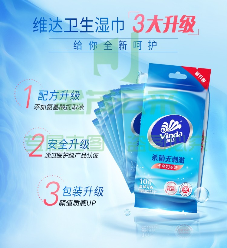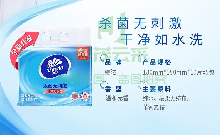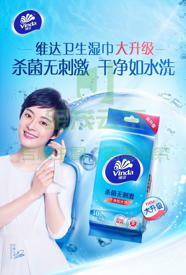 维达(Vinda)湿巾 杀菌湿巾 独立小包装湿纸巾10片*5包/提
