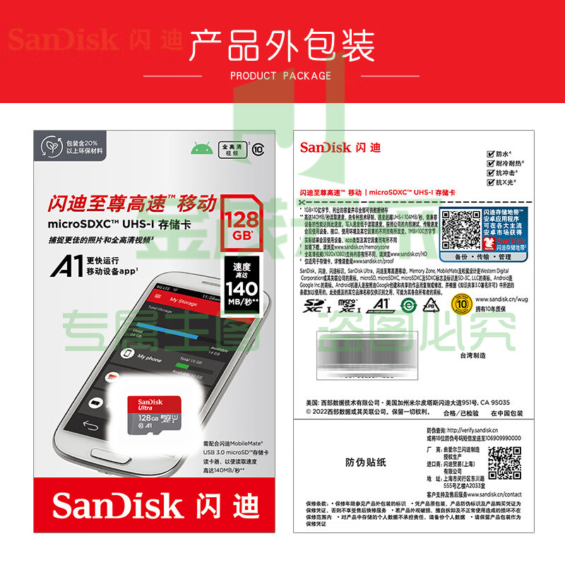 闪迪(SanDisk)128GB TF(MicroSD)内存卡 A1 U1 C10 至尊高速移动版存储卡 读速140MB/s 内存卡