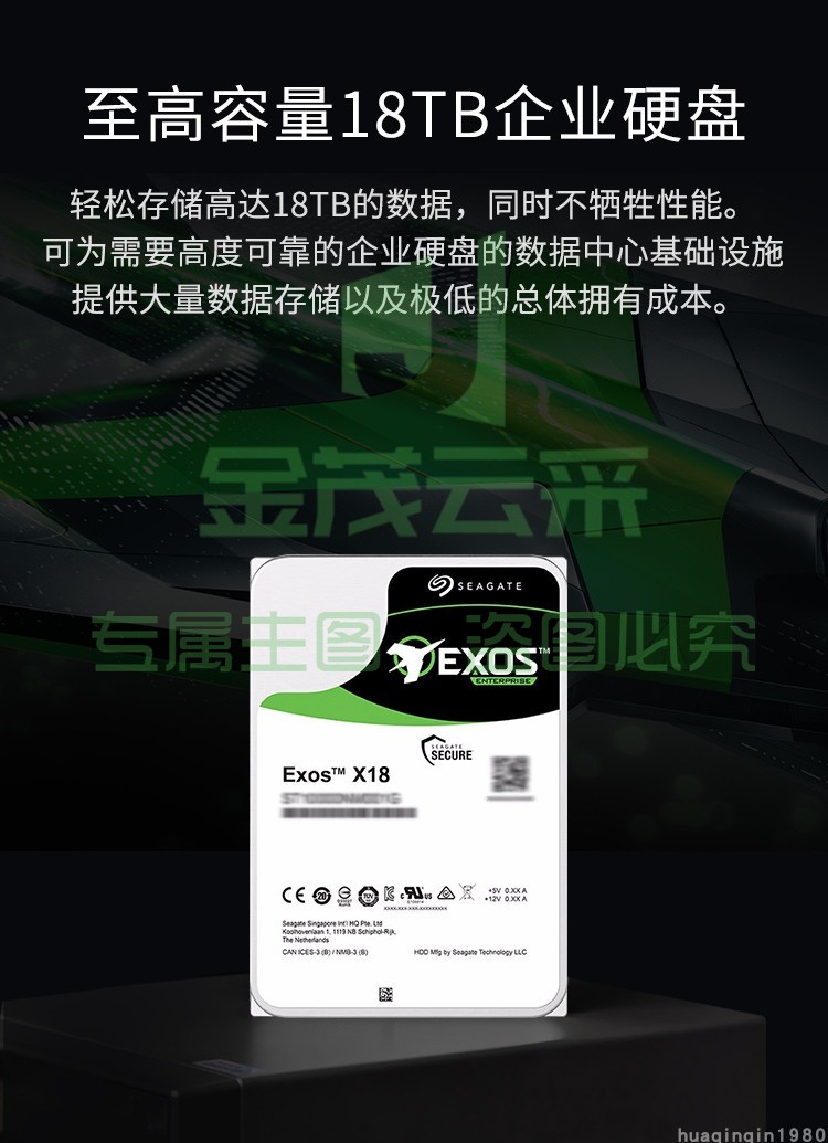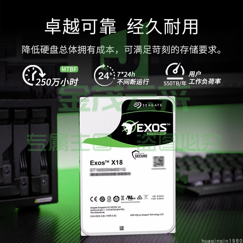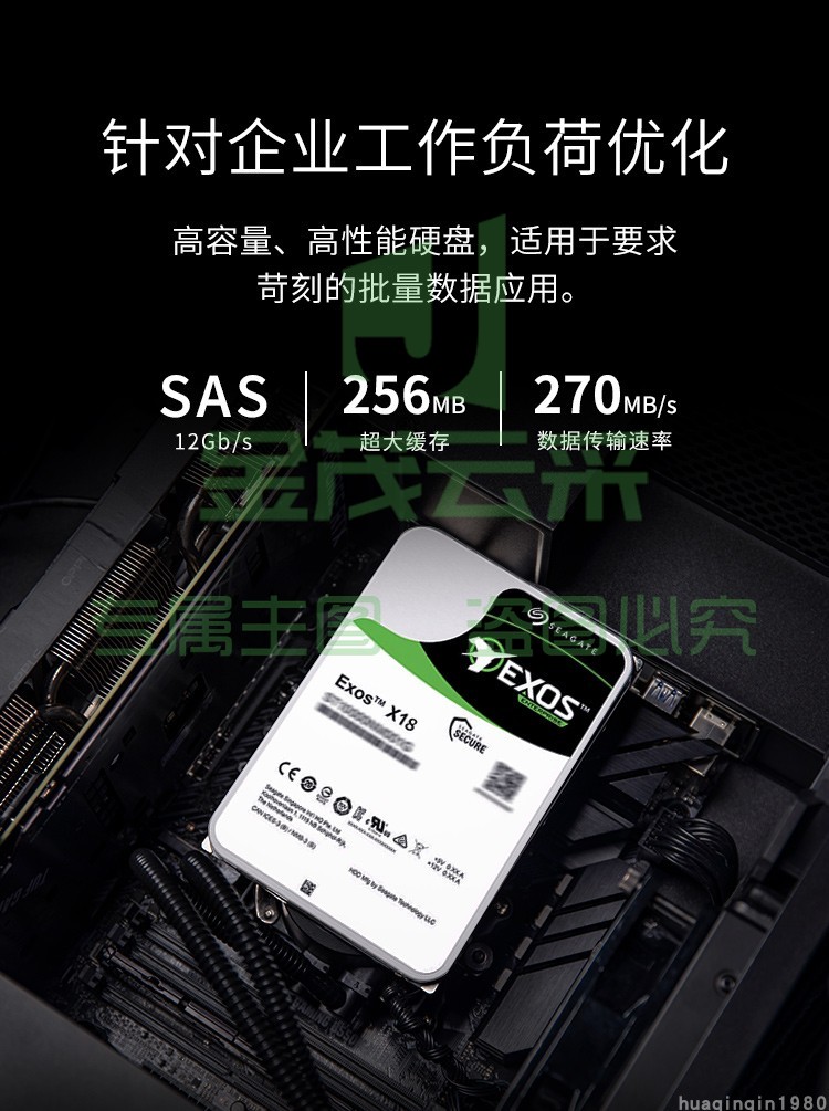 希捷(SEAGATE)企业级硬盘16TB 256MB 7200RPM CMR垂直 SAS 希捷银河Exos X18系列 氦气 服务器硬盘ST16000NM004J