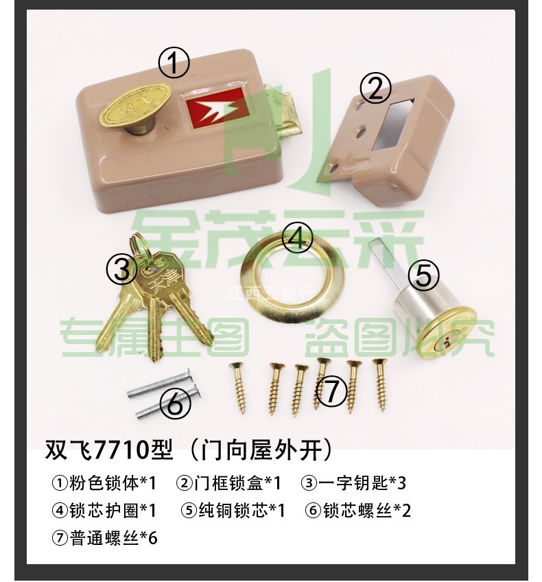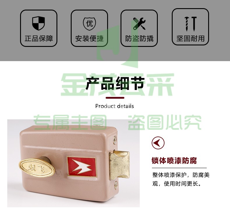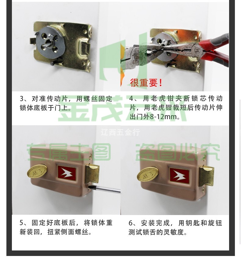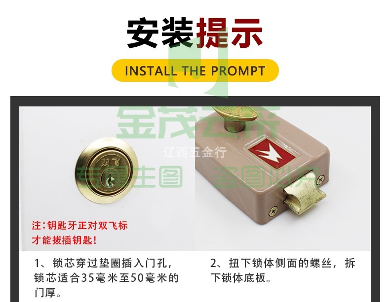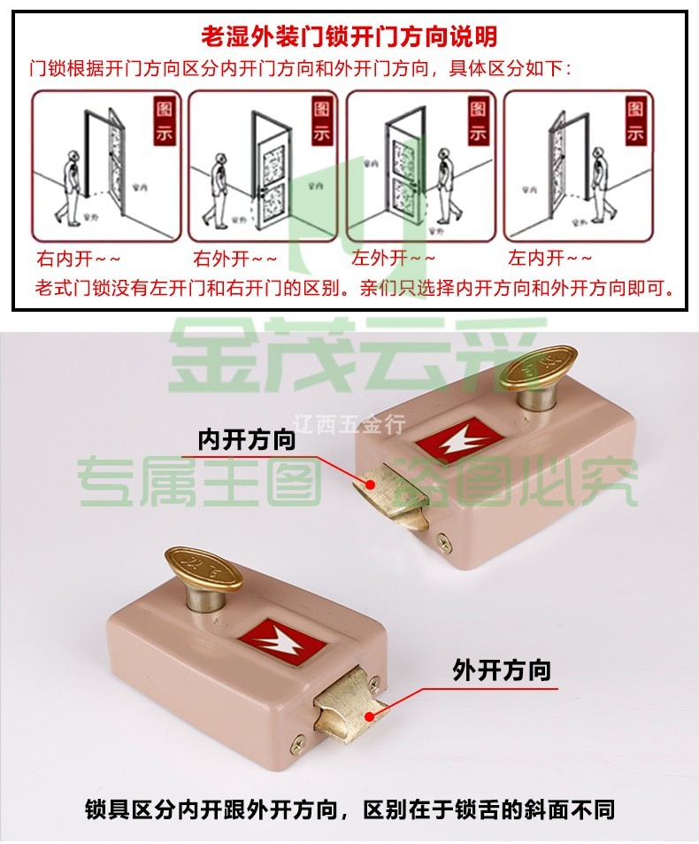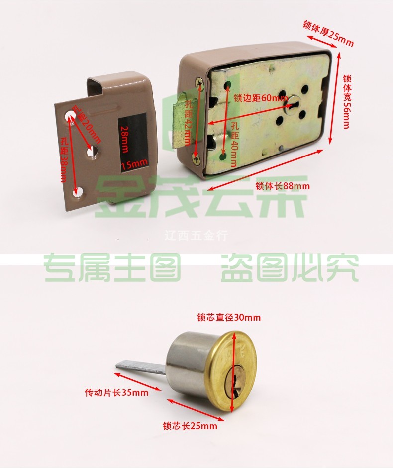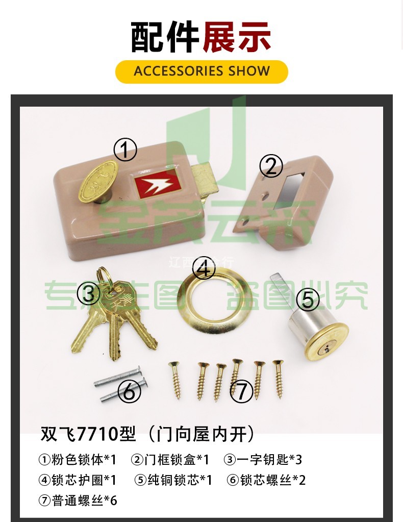 老式门锁 三保险弹子门锁 三保险老式木门防盗内门锁碰锁 方向可选择