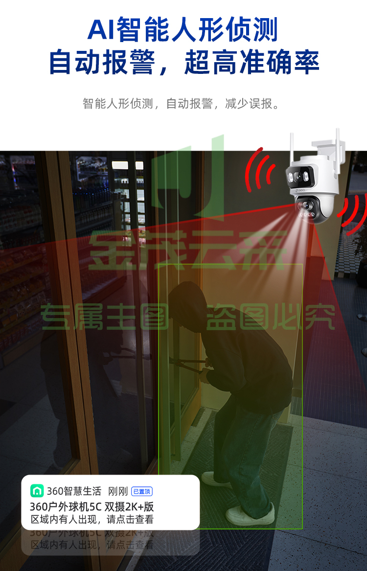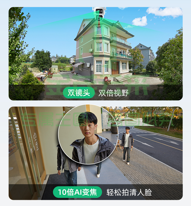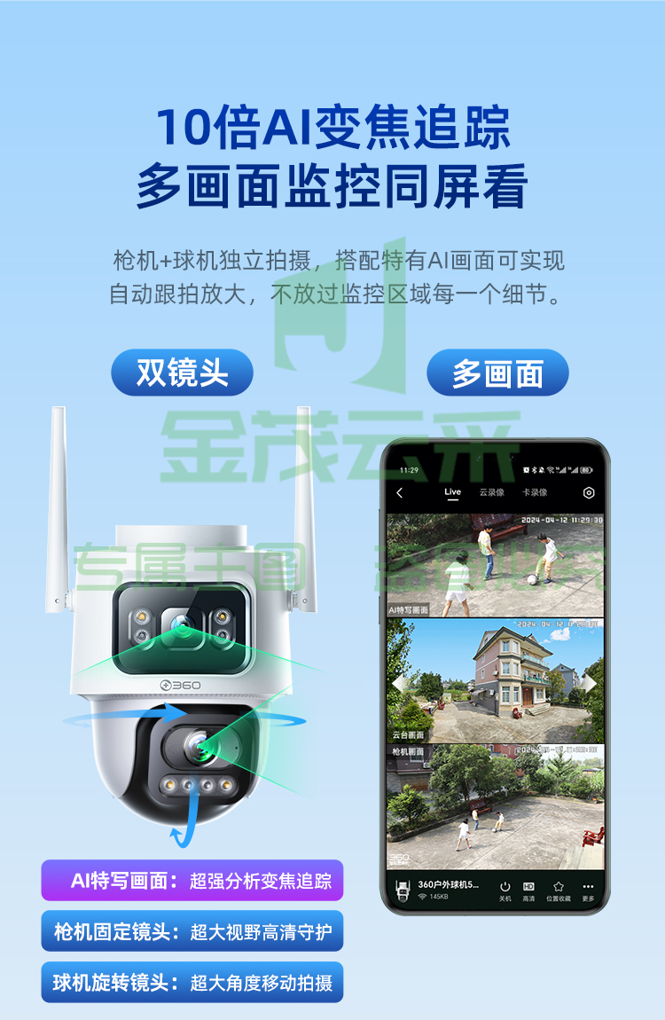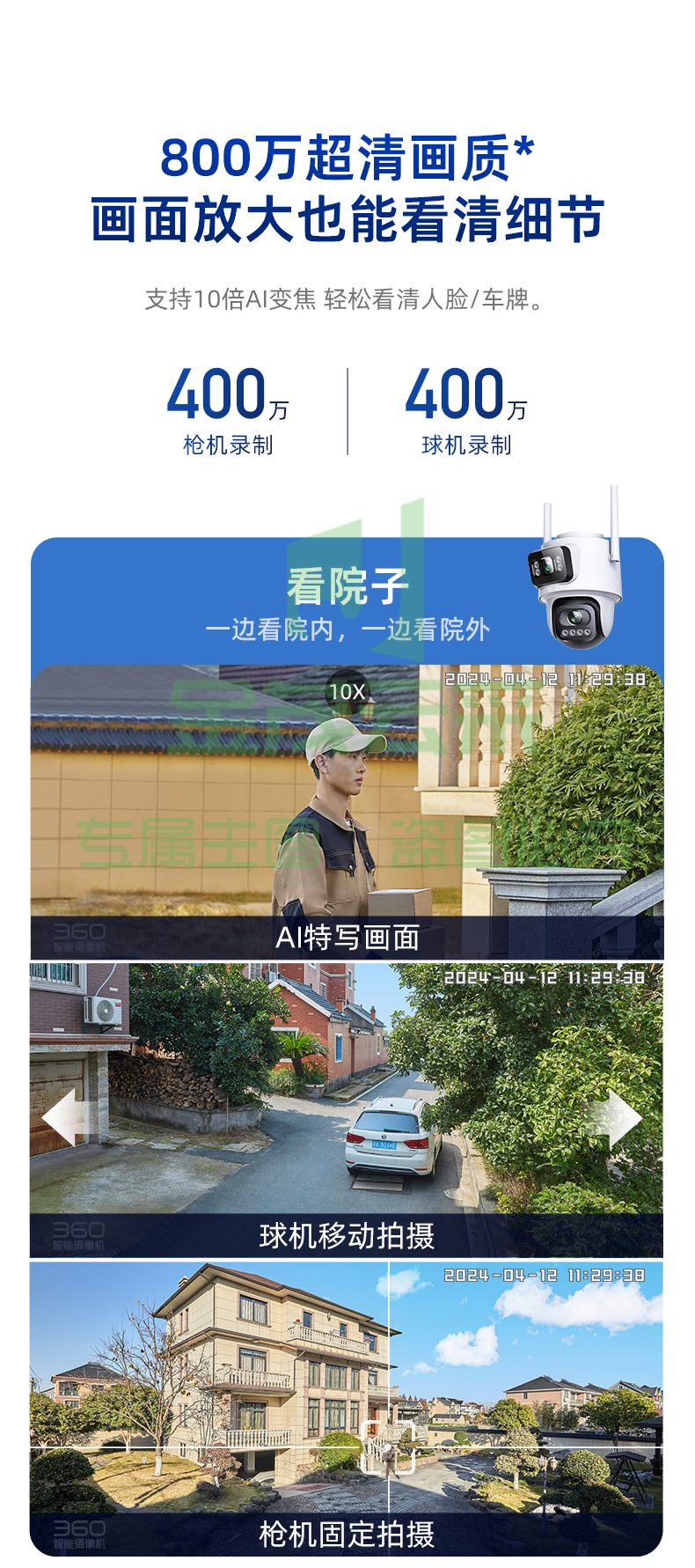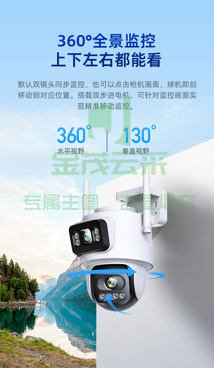 360双摄800万像素室外手机远程防水家用夜视全景变焦监控摄像头
