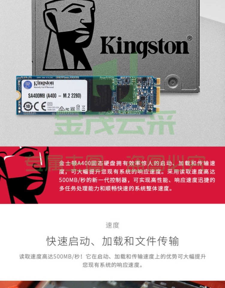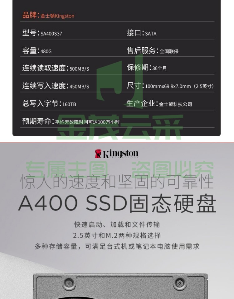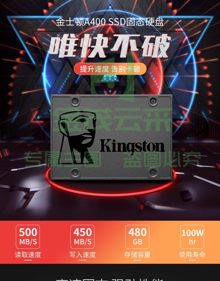 金士顿(Kingston) 480GB SSD固态盘 SATA3.0接口 A400系列 台式升级 上门安装系统