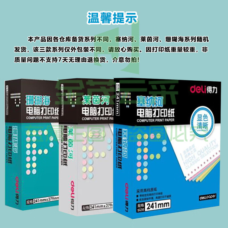 得力(deli)N241-2(C)彩色不撕边 塞纳河电脑打印纸 二联整张【白+粉】