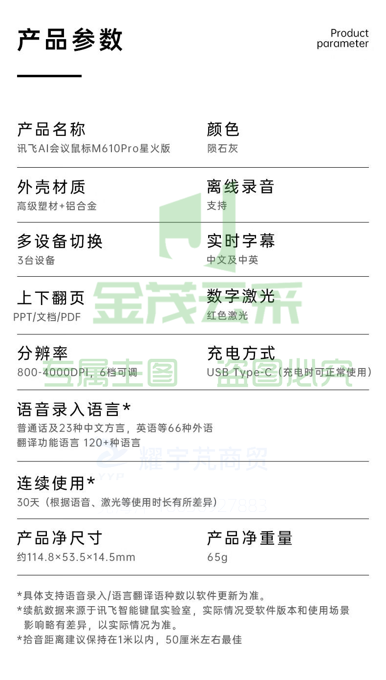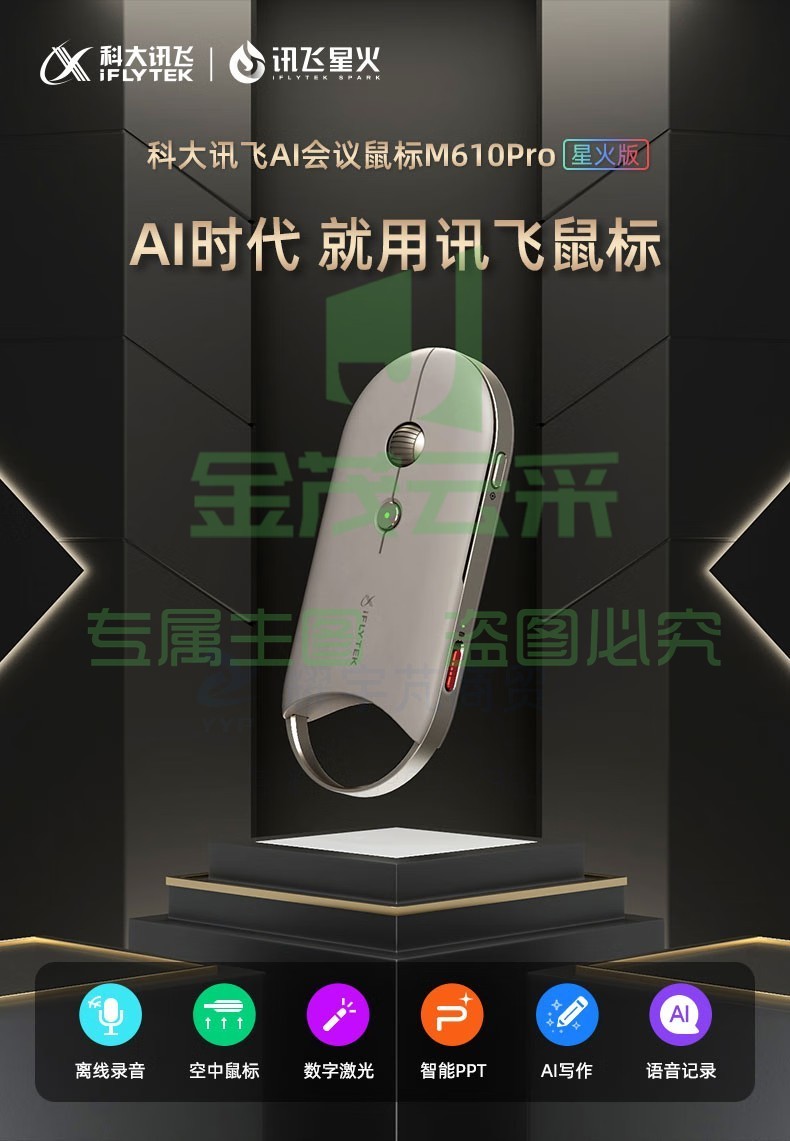 科大讯飞智能鼠标M610 Pro星火版 空中鼠标 离线录音 AI智能办公鼠标 轻薄便捷 语音输入翻译 搭载DeepSeek 会议鼠标M610PRO星火版-灰色