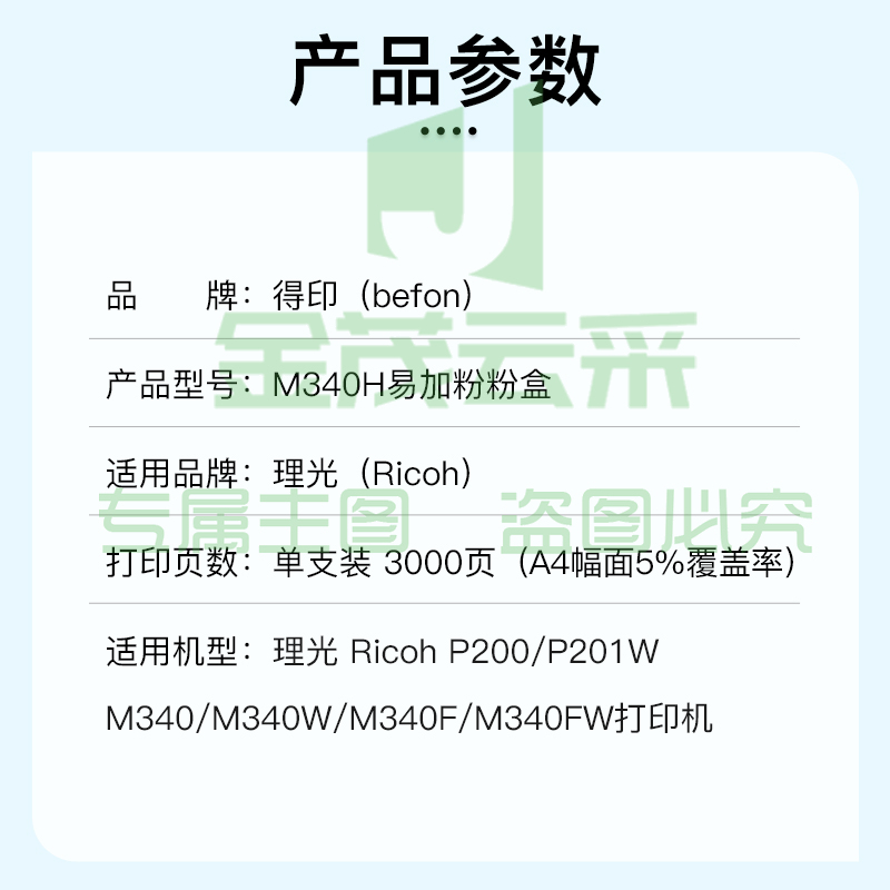 得印(befon) M340墨 可加粉3000页适用理光Ricoh p200/p201w M340FW M340F/P M340W/M多功能一体机