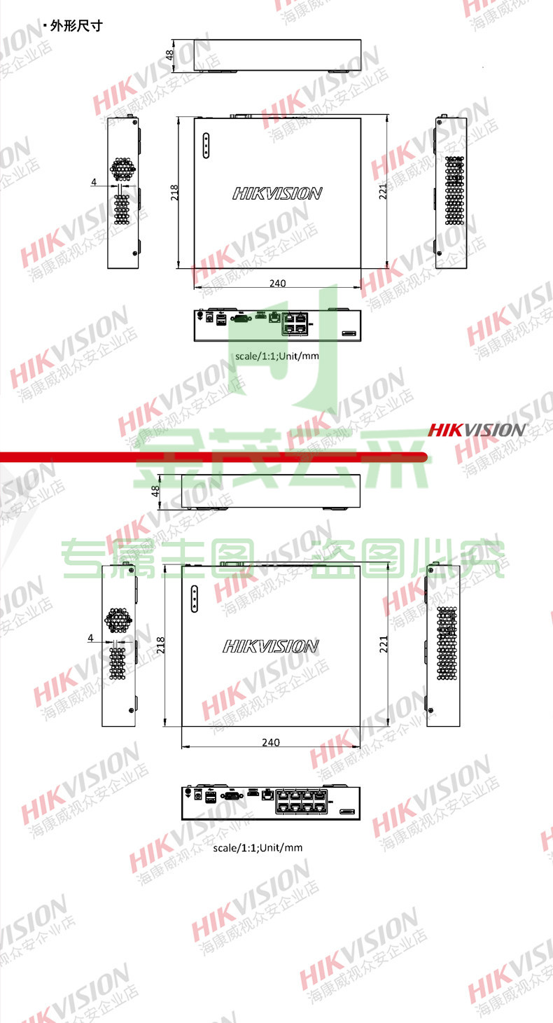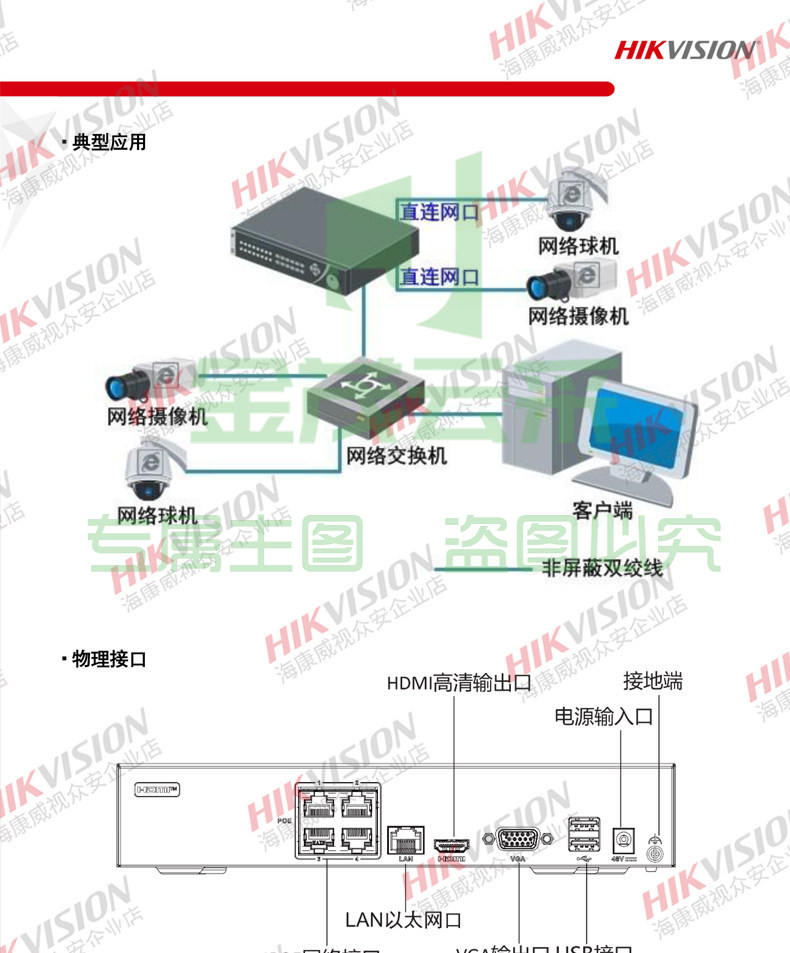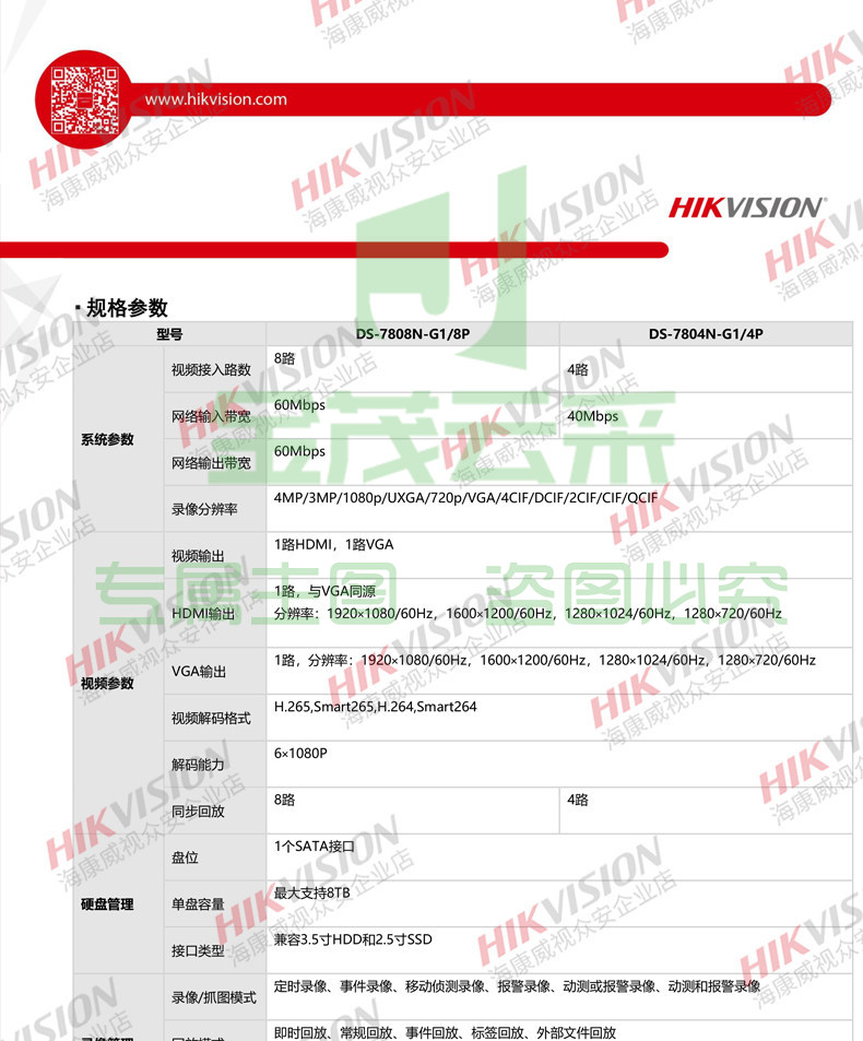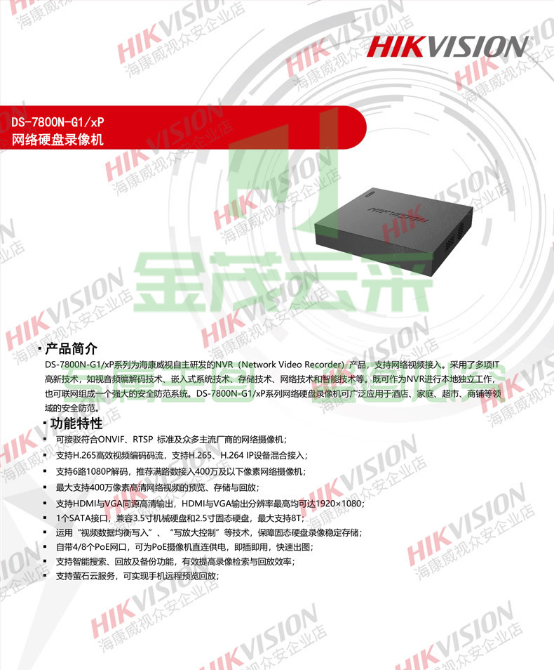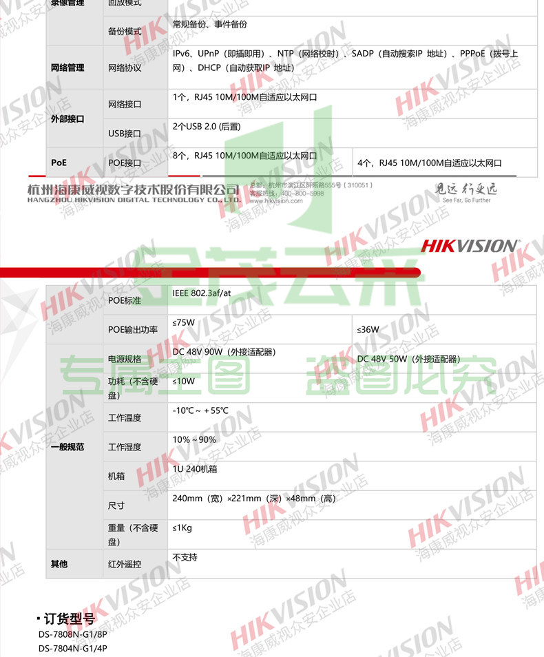 海康威视4路1盘POE网络远程NVR高清监控硬盘录像机DS-7804N-G1/4P
