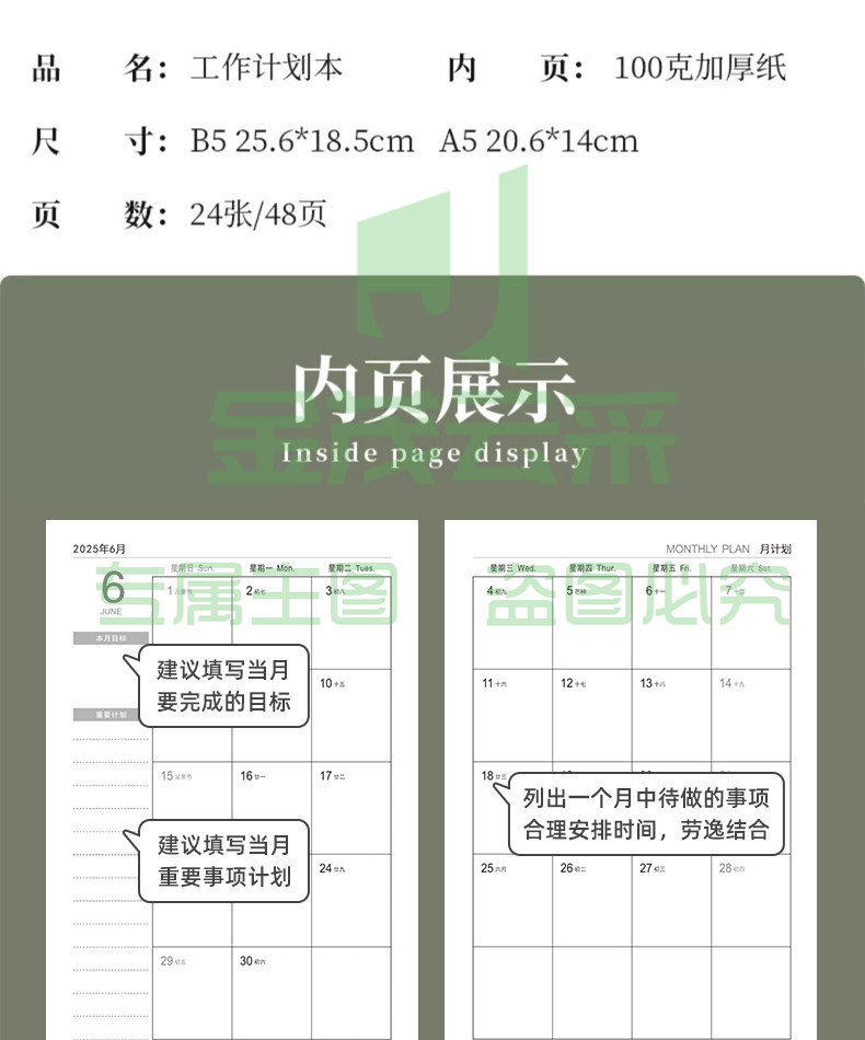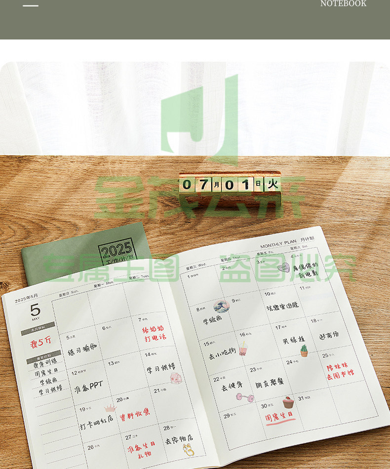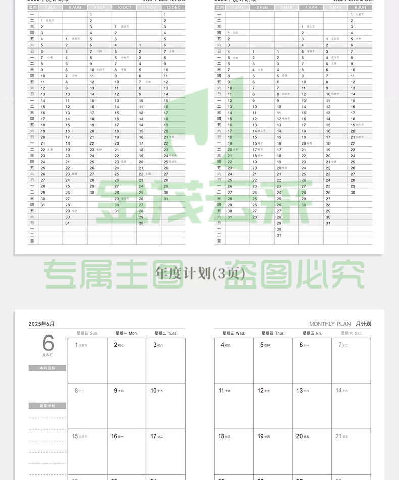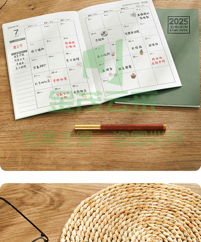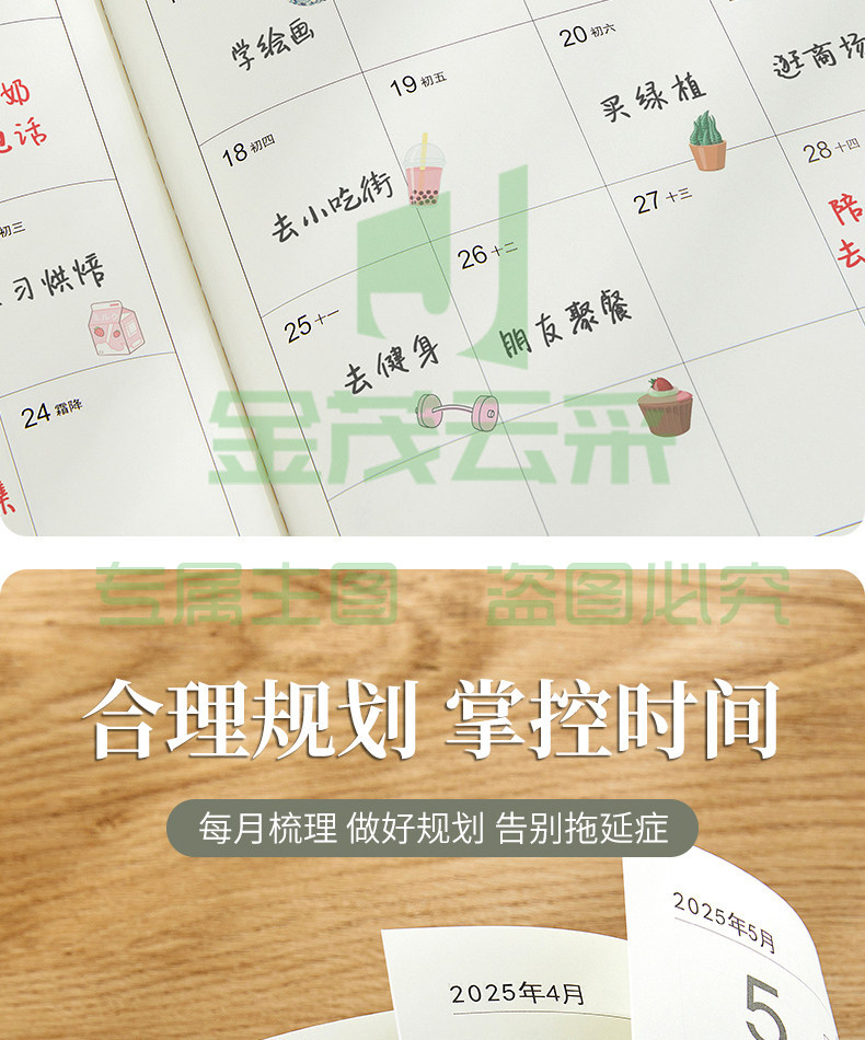 2025年月计画 划本2026日程本记录记事本工作小秘书日历年历每日计画 划表自律打卡笔记本子时间管理带日期定制logo