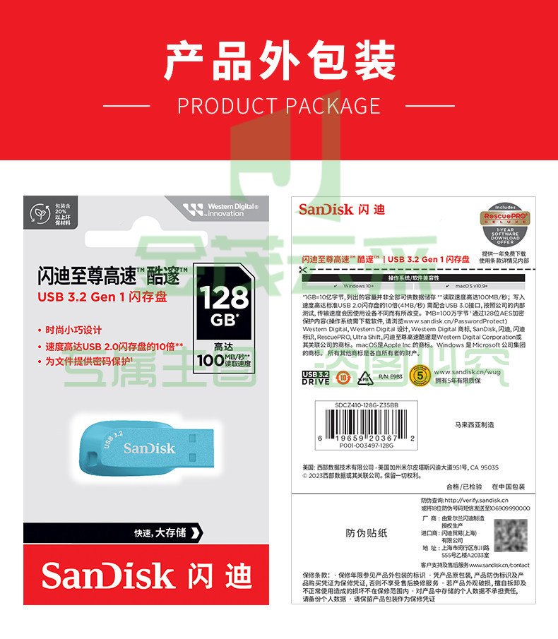闪迪CZ410优盘64g高速USB3.2