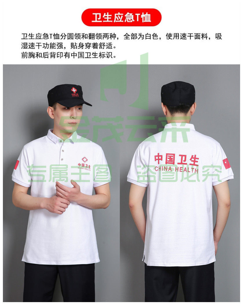 全套中国卫生应急服装 白色-----短袖翻领T恤