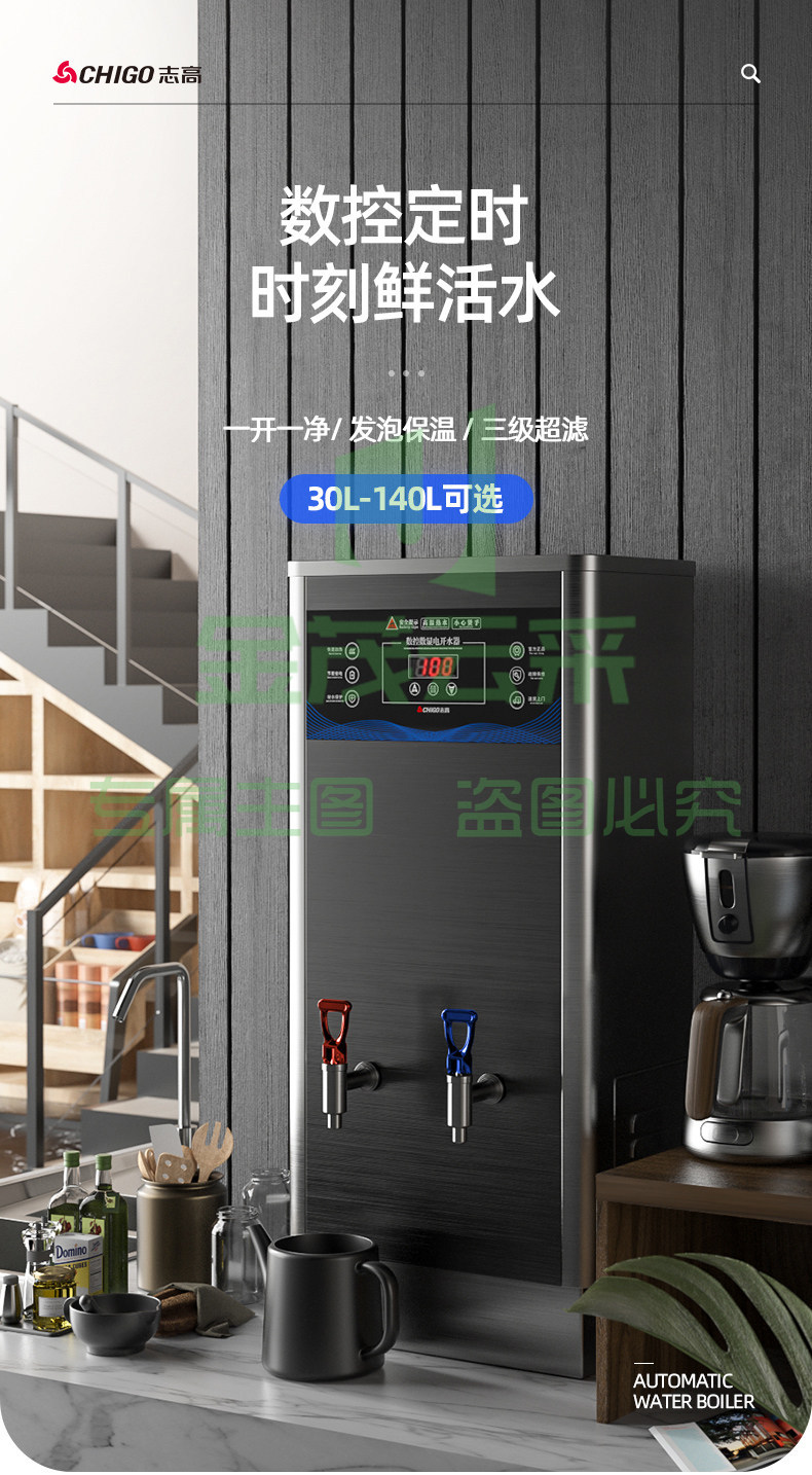 志高开水器热水器饮水机70L商用全自动电热常温/热水双出水三级过滤 学校医院办公楼适用落地式