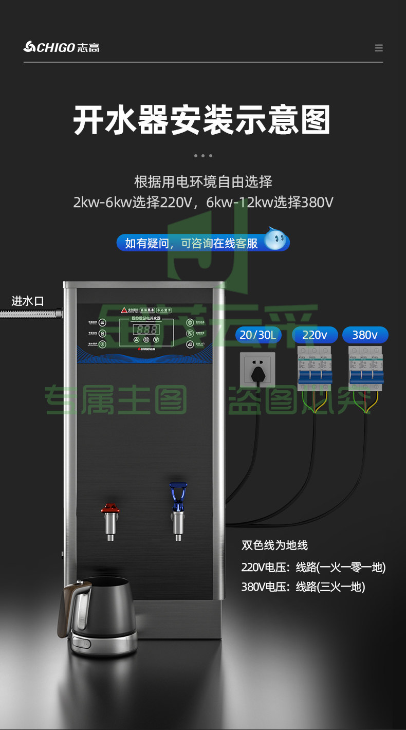 志高开水器热水器饮水机40L商用全自动电热常温/热水双出水三级过滤 学校医院办公楼适用落地式