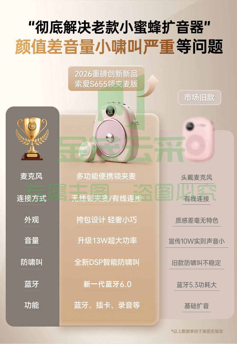 索爱S655无线领夹小蜜蜂扩音器教师专用上讲课耳麦克风喇叭扬声器