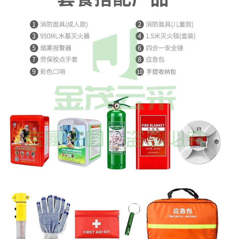 唐安 家庭消防应急包套装 火灾紧急逃生用品居家备用初期火灾灭火器材 单身应急套装(升级包)